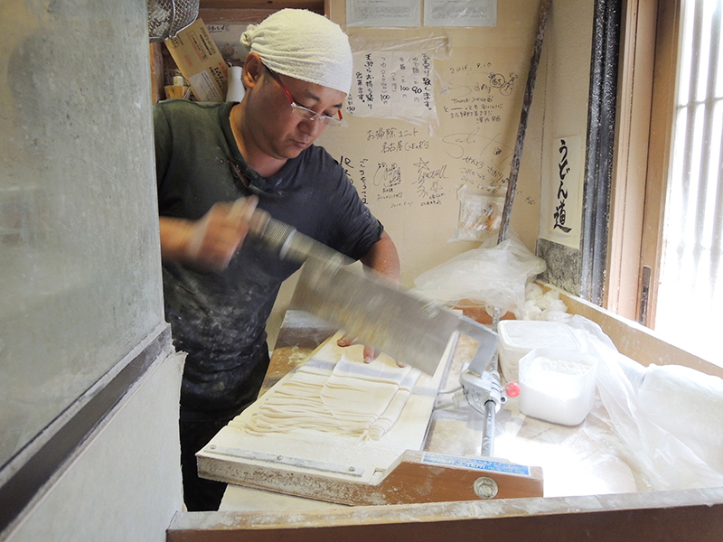 朝、昼、夕方、夜とうどんを打ち、自ら切って……