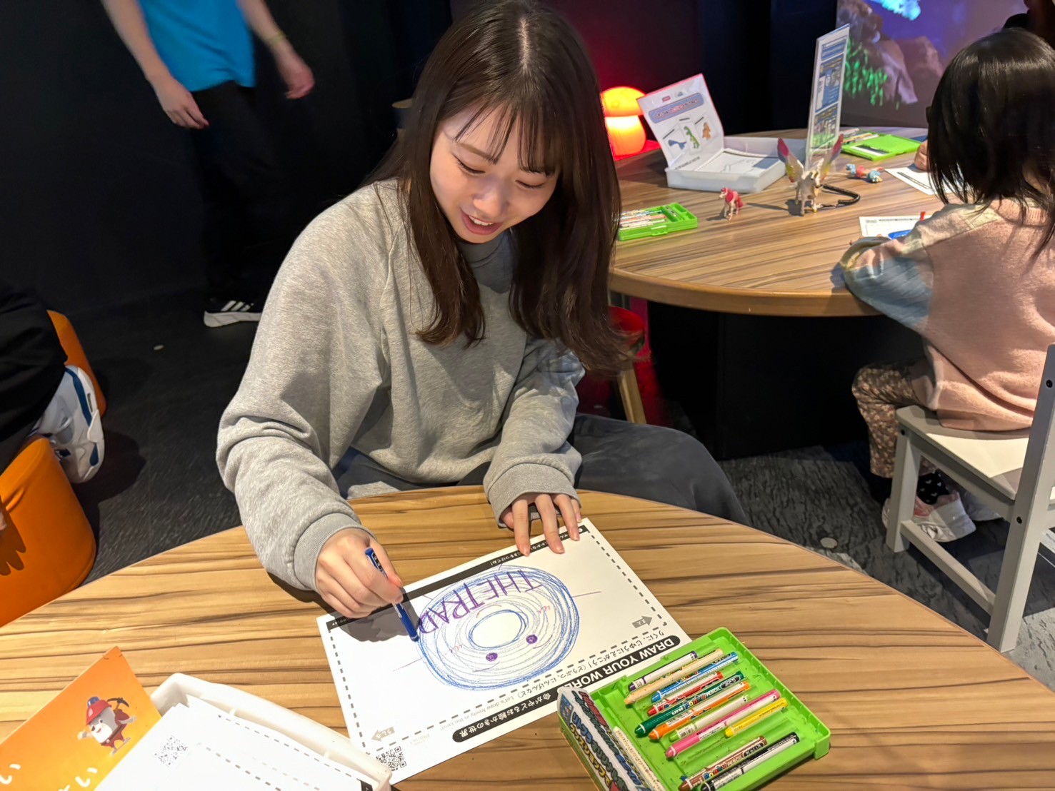 DRAW YOUR WORLDでは、自由に描いた絵やぬりえが、立体となってスクリーンの中で生き生きと動き出します!