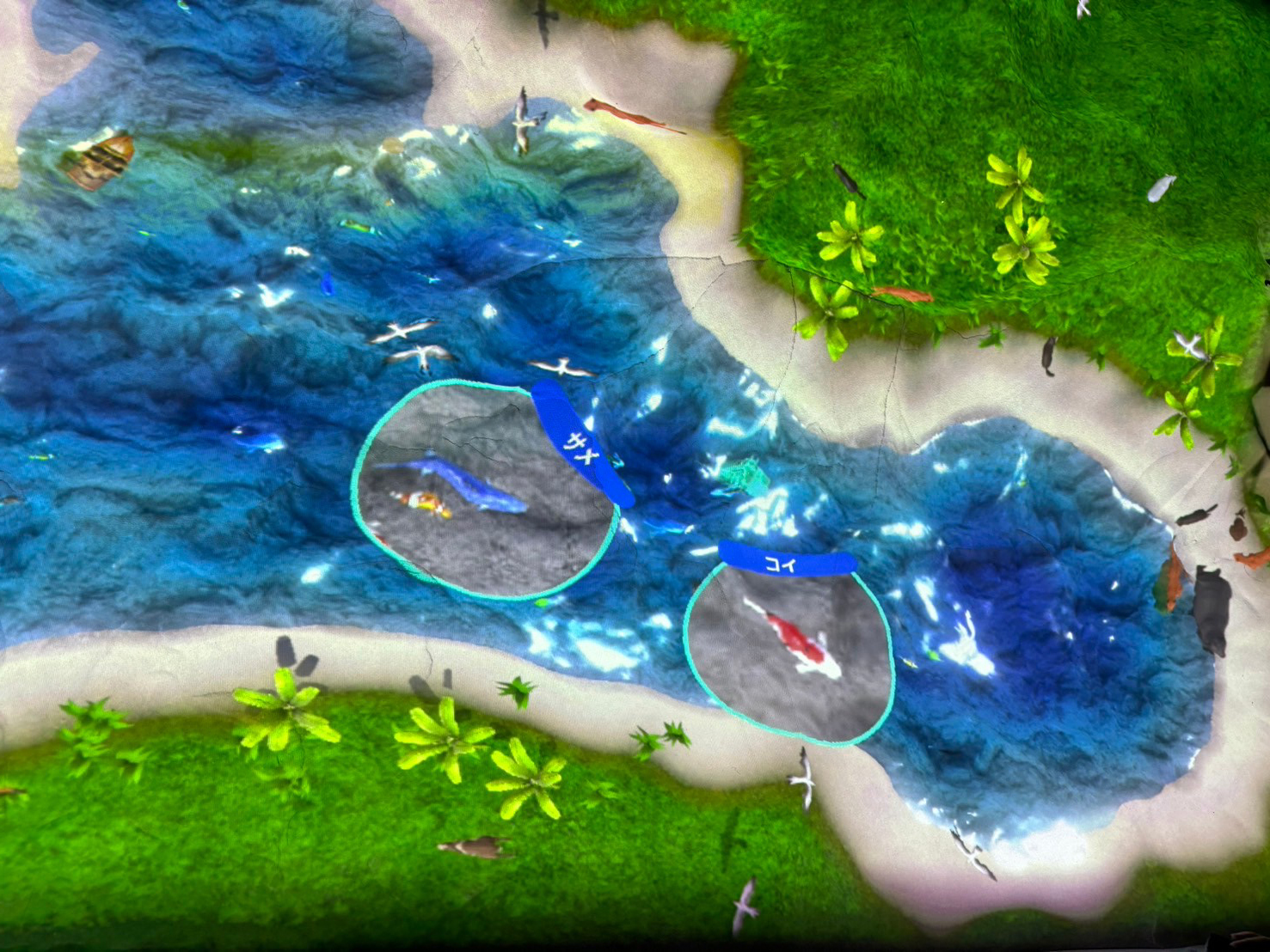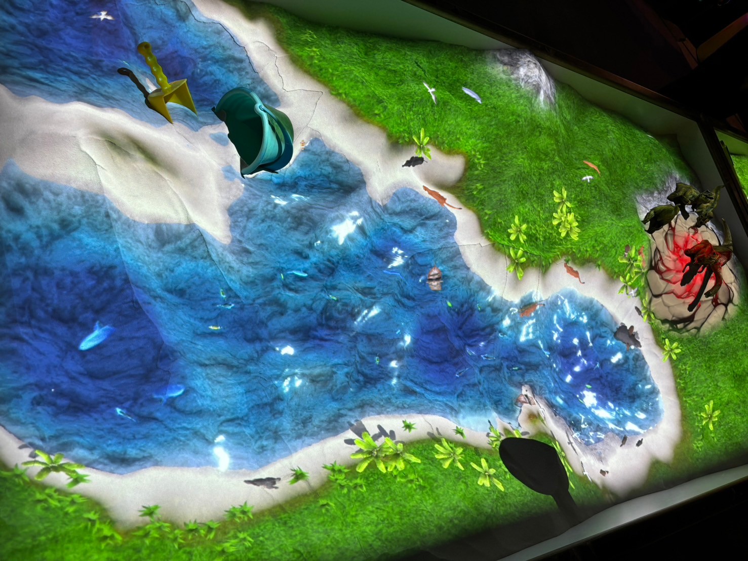 砂を高く積み上げると森が投影され山になって、掘ると川が映し出されます。