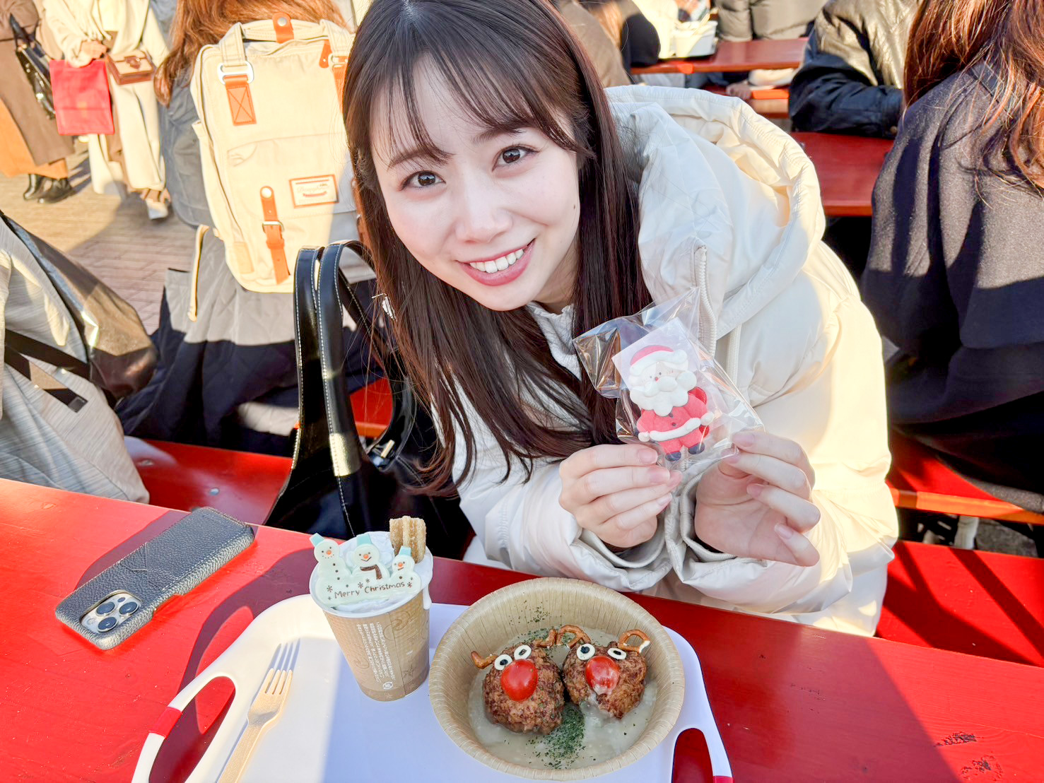 雪だるまの姿をしたフランクフルトやクリスマスツリーに見立てた温かいラテなど頂けますよ❗️