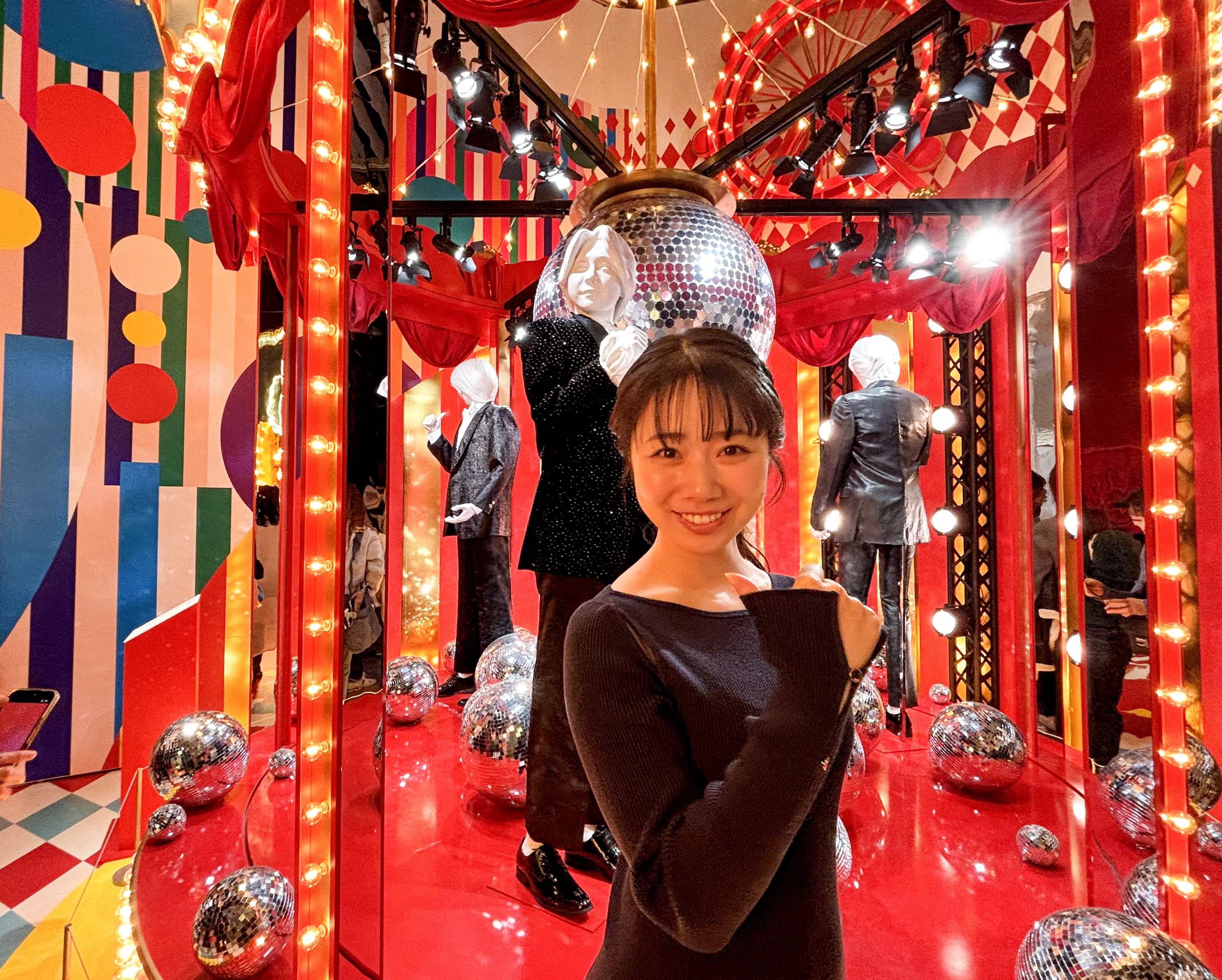 マネキンの足元にはMVでお馴染みのミラーボールが置かれ、