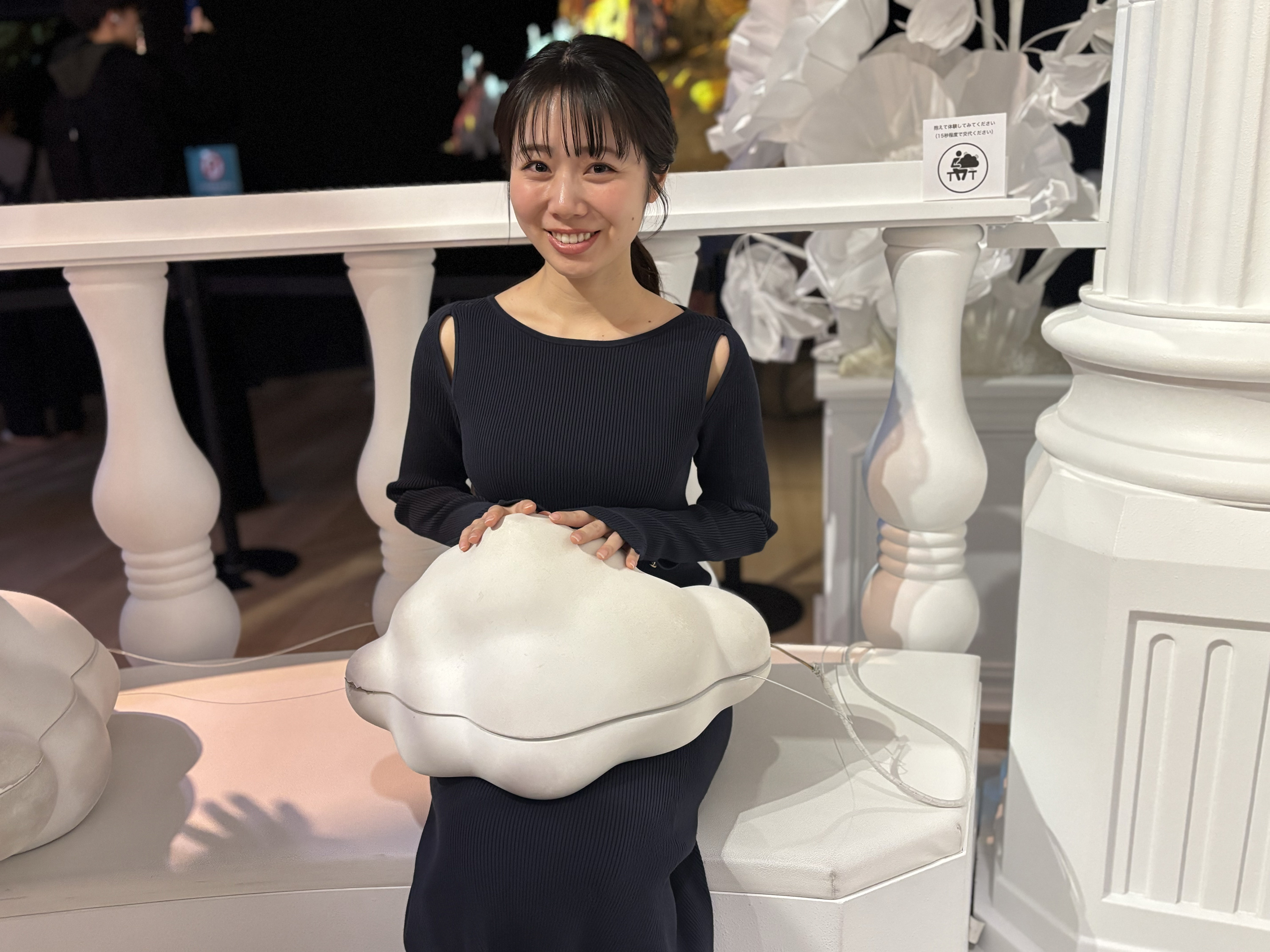 触れる:雲のようなオブジェに触れると、楽曲のリズムを振動で感じられる