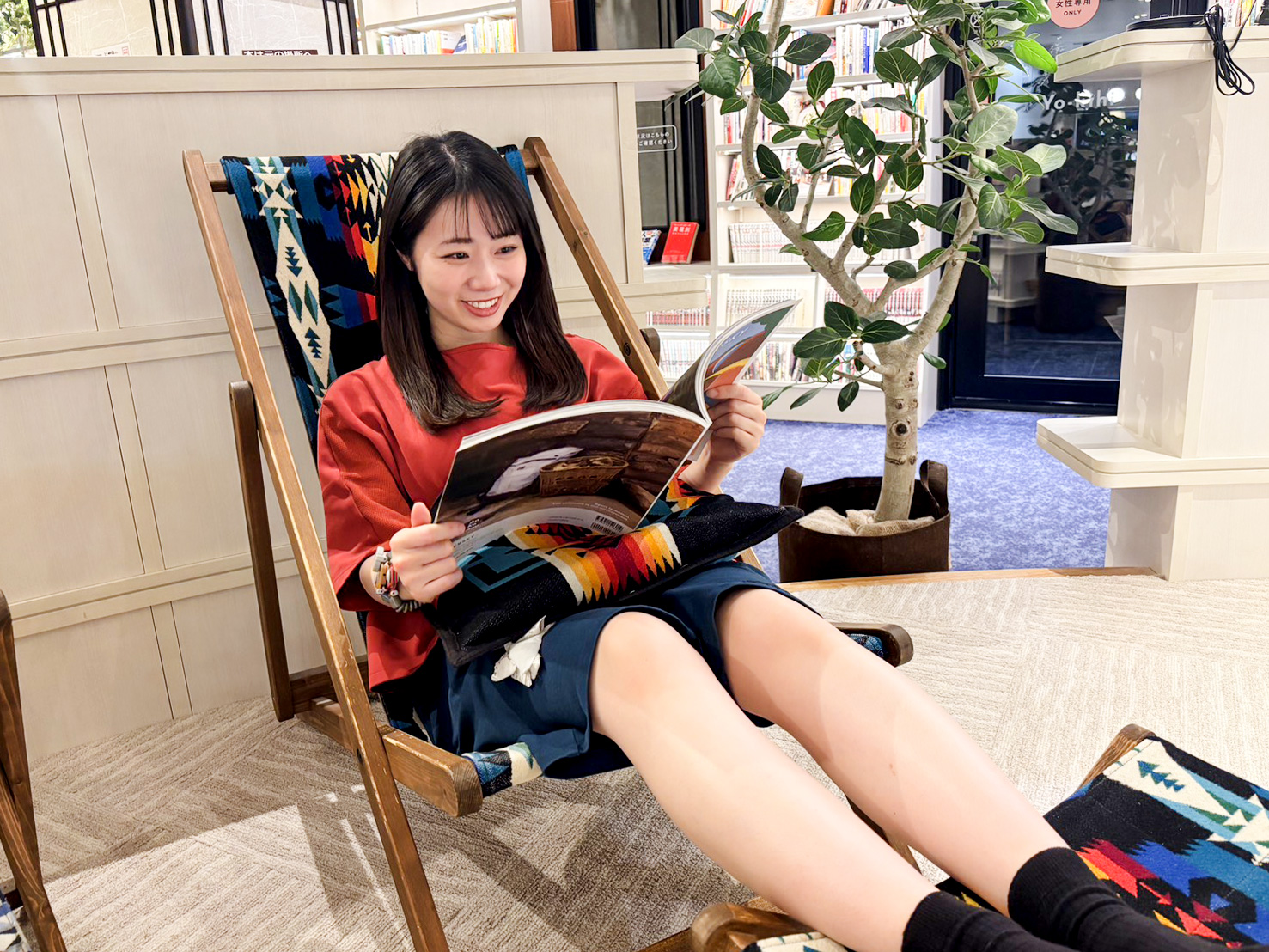 緑に囲まれたボタニカルな空間に、クッションやアウトドアチェア、小さなテントなどリラックスアイテムが散りばめられています❗️