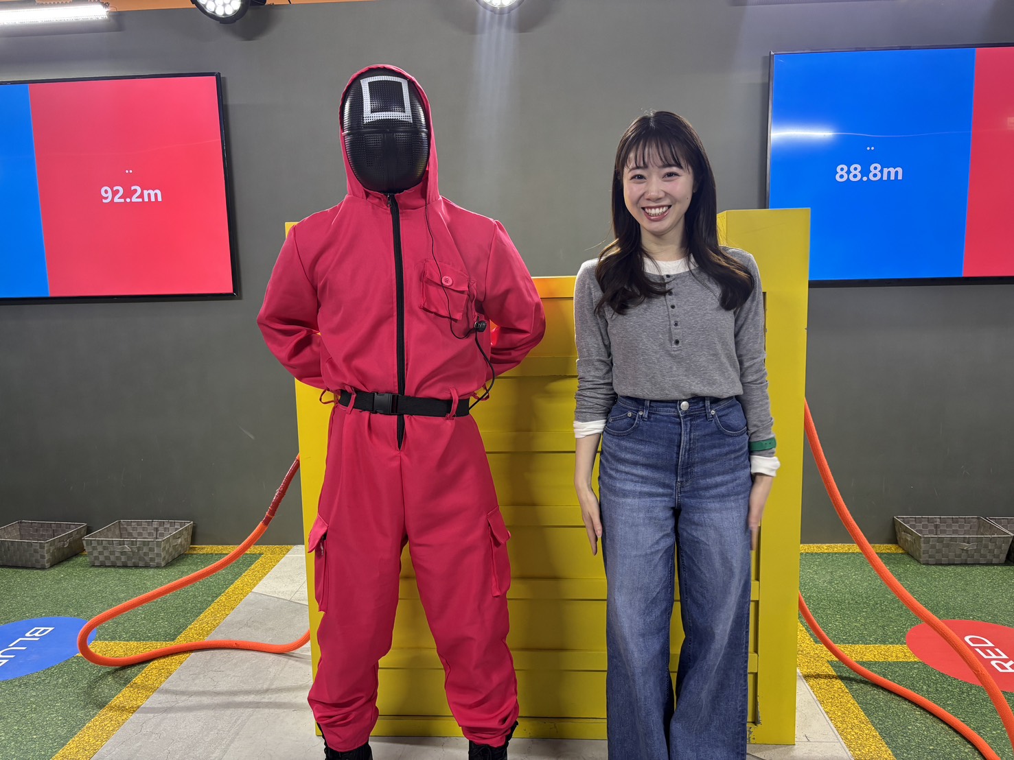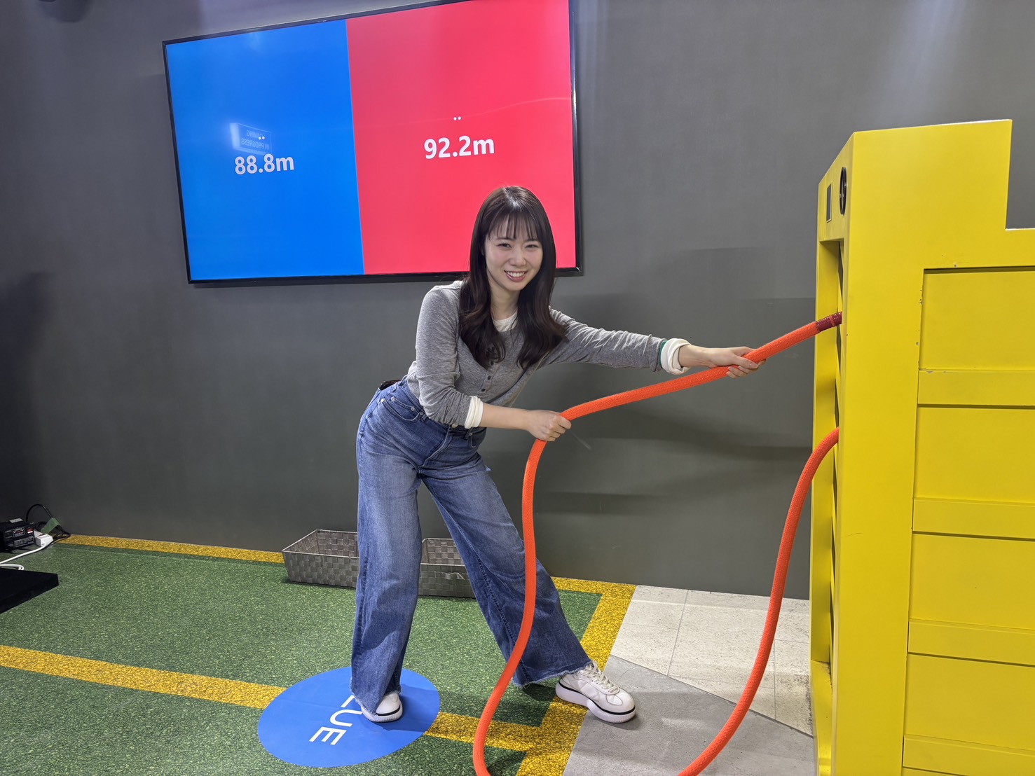 プレイヤーは赤チームと青チームに分かれて1対1で10秒間ロープを引っ張り合い、各チームがロープを引いた合計の長さを競い合います‼️