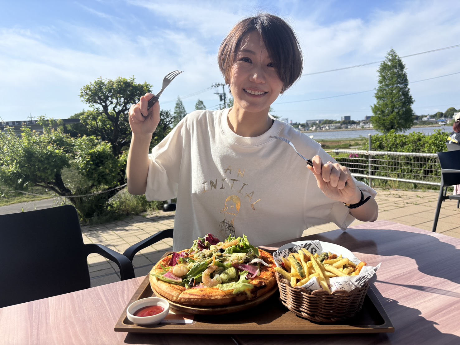 「沼南エリア」の柏市で採れた野菜を使ったメニューを味わうことができるレストラン「ベジタリアン シャンティー」では、10種類以上の野菜がのった「シーフードサラダピッツア」をいただけます❗️