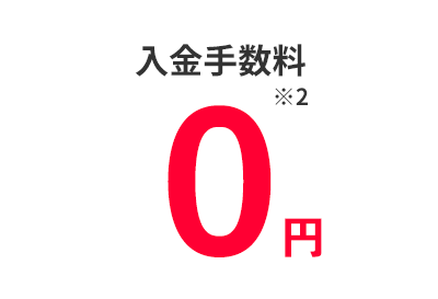 ※2 入金手数料はジャパンネット銀行の場合のみ永年無料です。その他の場合は入金サイクルが当月末締め(月1回の入金)の場合は無料、累計決済金額1万円以上で都度入金とする場合は105円(税込)の手数料が発生します。