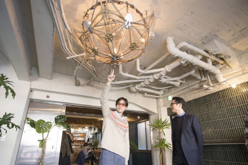 「ここ『Lowp』は、シェアオフィスです。多くがモノ作りに関わる事業者さんで、モノを作る空間をみんなで共用しています。イベントを演出する企業さんが多いです。このビル自体が僕らの手作りで、机や電気やフロアなども自分たちで作りました」