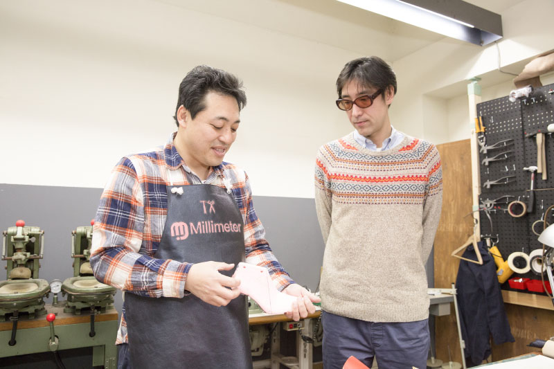 「ミシンで塗ったり、革を木型に巻く〈釣り込み〉という作業は人間の手の力や技が必要ですので、あえて職人さんの技術を採用しています。足の骨格や肉の付き方を見て、少し締め上げるなどの人間技は残しています。お客様が満足できる物はコンピューターだけではできません。オリジナルの〈マイ木型〉を、みなさんが家庭で持ってもらう時代が来るんじゃないかと思っています」