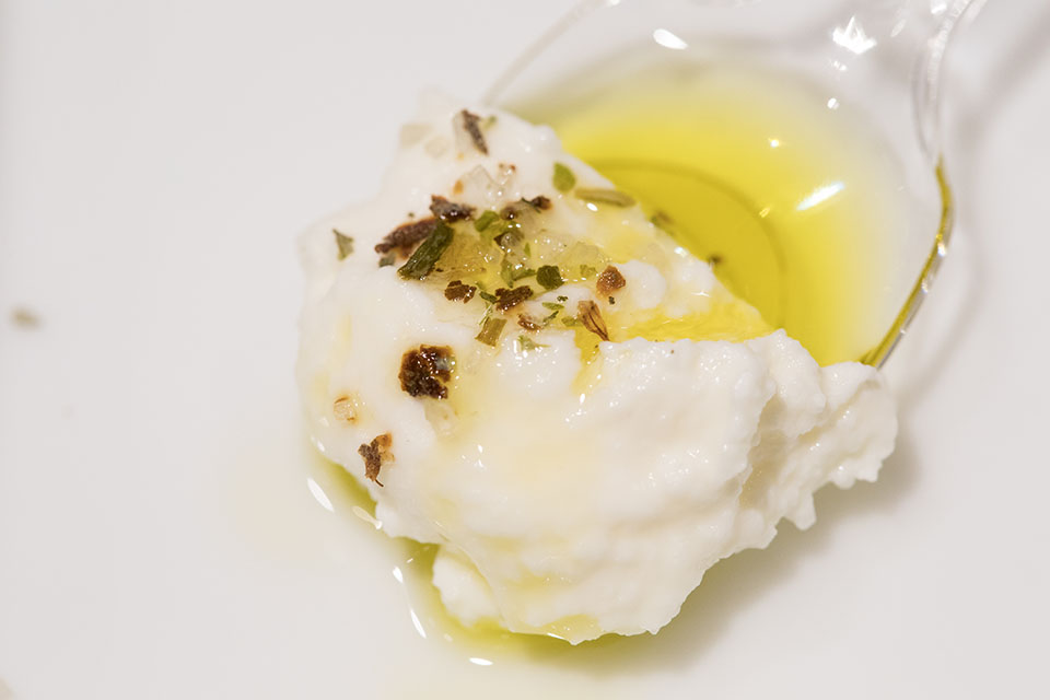 炭本「まずはオリーブオイル。クロアチア産『アグロラグーナ』です。まろやかで少し辛味が残ります。臭いを少し嗅いで飲んでみてください」