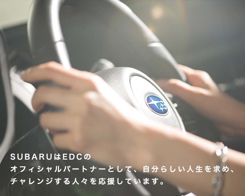 EDCのガレージには、オフィシャルパートナーであるSUBARUの車がズラリ。