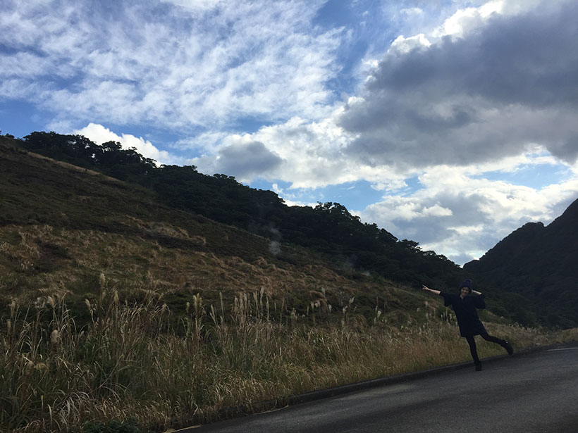 ※青ヶ島 地層から蒸気が立ち込めるカルデラの中