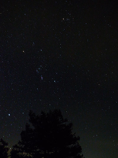 ※篠原さんが戦場ヶ原で撮影した、冬の星空(すばるとオリオン座)