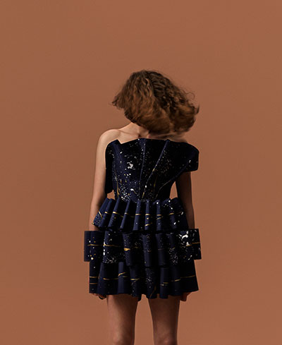 ※星をイメージして布に描いたイラストと、それを基に作ったドレス「SHIKAKU