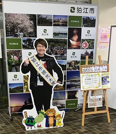 (狛江市役所内・近藤さんの観光大使パネル)