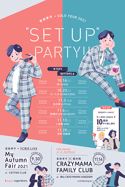 PARTY!!」』では、弾き語りだけはなく、様々な工夫が満載だそうです!昼がTOPS公演、夜はBOTTOMS公演となっています。皆様、セットアップで参加してみてはいかがでしょうか!