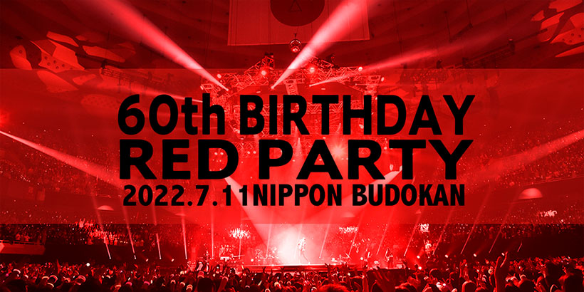 PARTY!当日は、WOWOWで生中継もあります。チェッカーズ時代から今に至るまでの曲を堪能できる一夜限りの還暦ライブ!当日は、ファッションのどこかに赤を取り入れ、フミヤさんの還暦をお祝いしましょう!(下着が赤でもOKだそうですよ!笑)