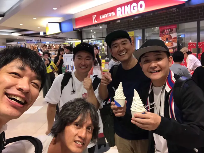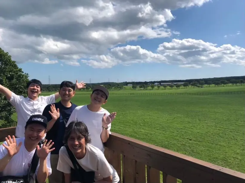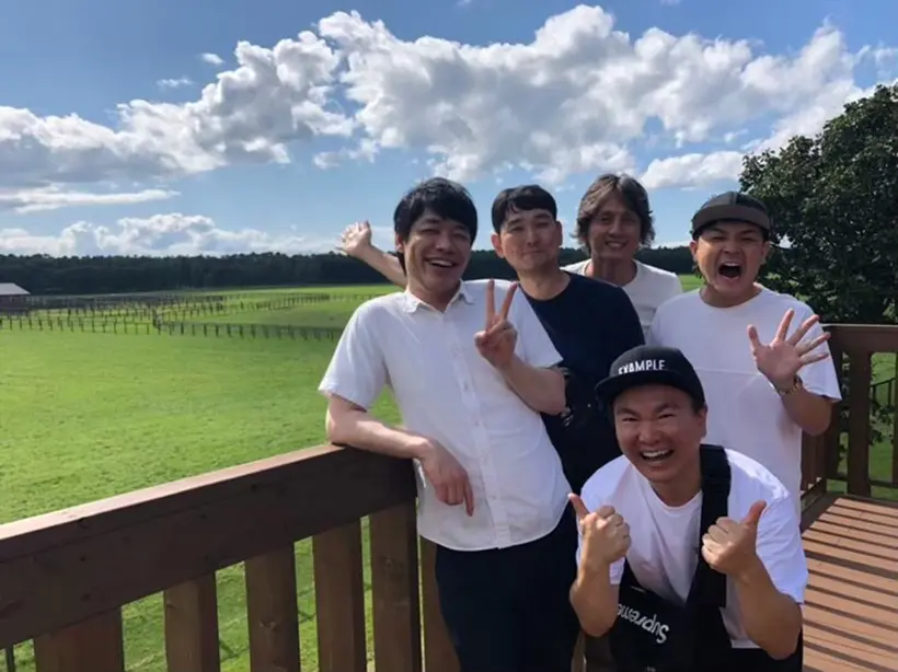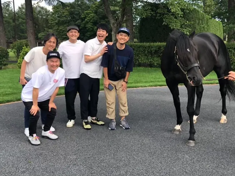 (加地さんと川島さん、さらに千鳥ノブさん、ナイツ土屋さん、かまいたち山内さんという競馬好き仲間で4年前に北海道に牧場見学に行った際のお写真。この時にドライブした北海道の一般道は、加地さんの思い出のドライブルートだとか!)