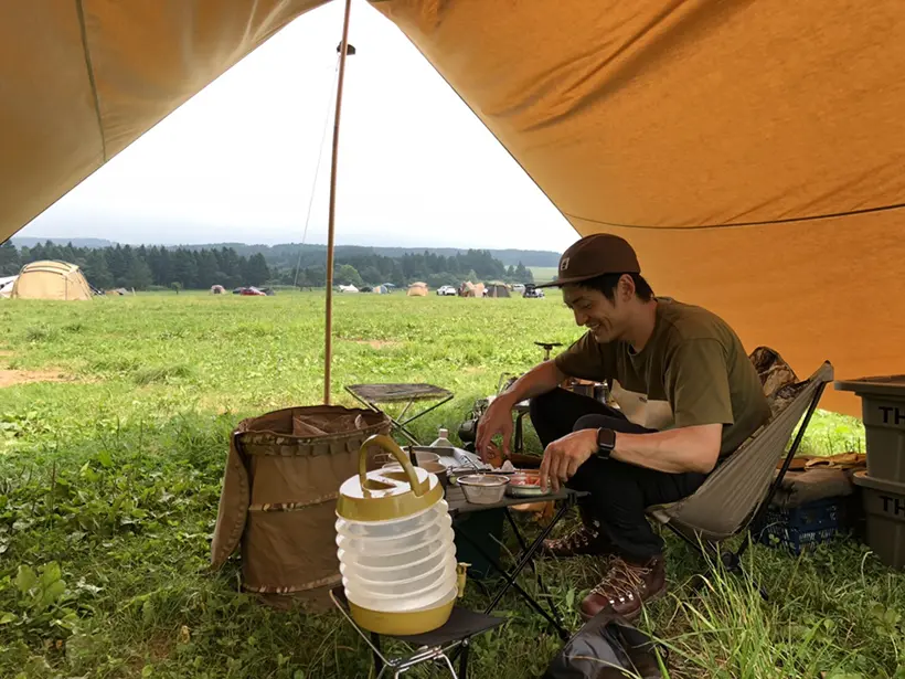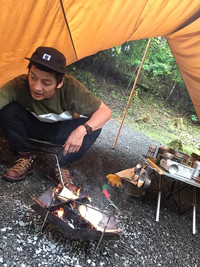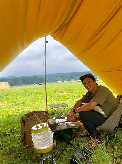 (自然に囲まれた中で、キャンプを満喫される村田さん!)