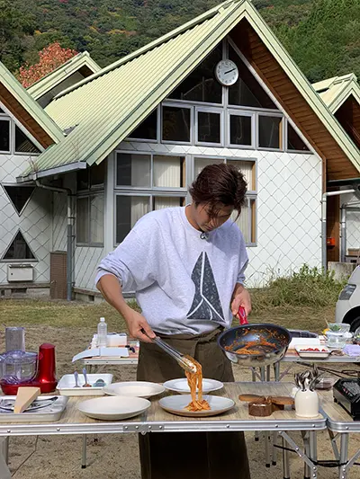 (ご自身の冠番組のロケで、料理の腕を振るうもこみちさん!)