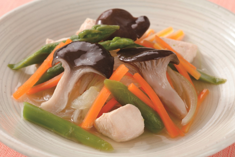 霜降りひらたけ・白菜・生ハムの香り高いコンソメスープ
