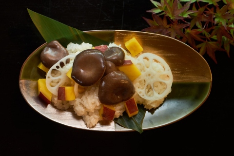 霜降りひらたけとさつまいも・蓮根のおこわ