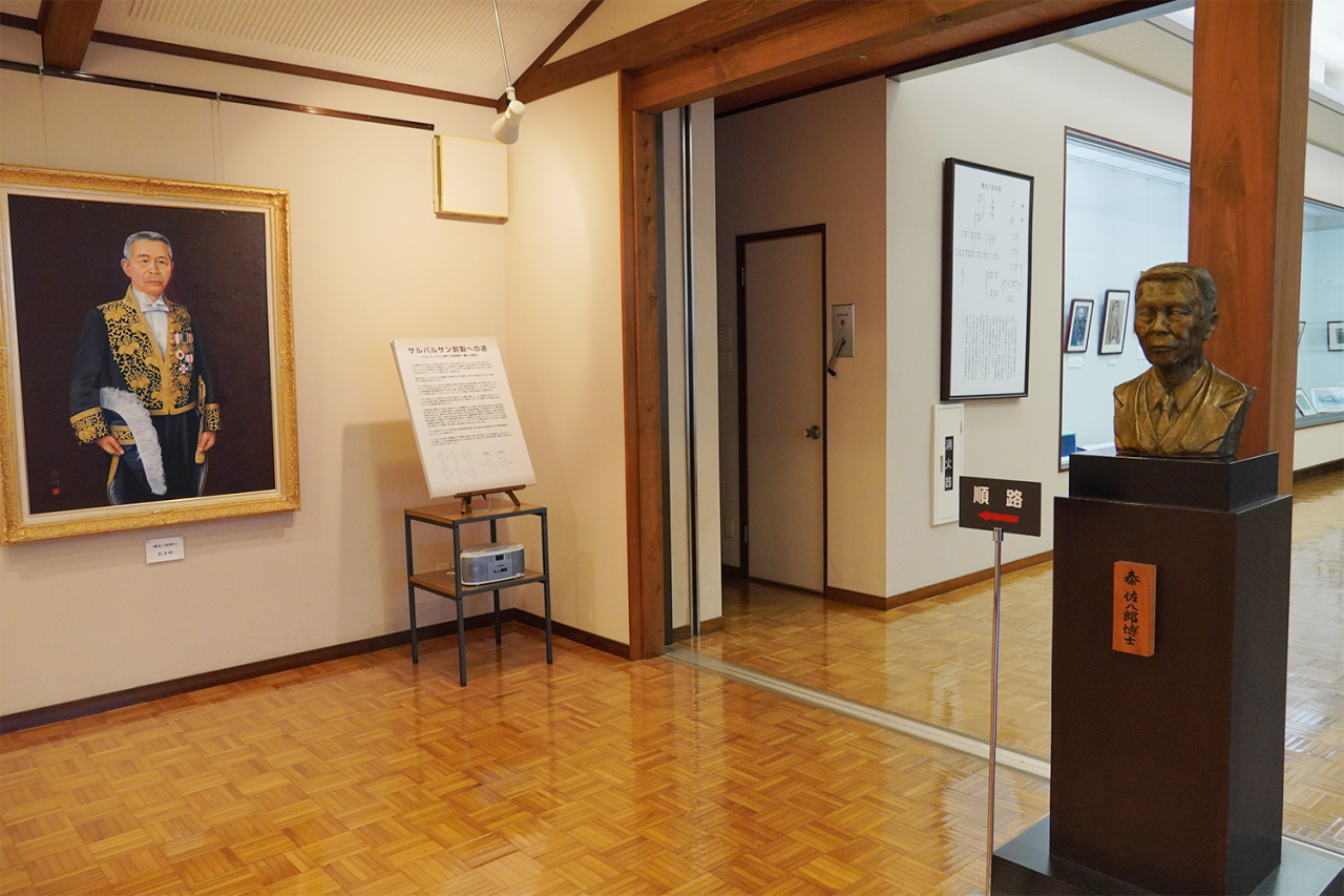 記念館には、恩師・北里柴三郎(きたさと・しばさぶろう)や、友人・野口英世(のぐち・ひでよ)の写真や、帝国学士院会員に選ばれたときに着用した大礼服などが飾られ、サルバルサンの標本など、医学的に貴重な文献も展示されています。