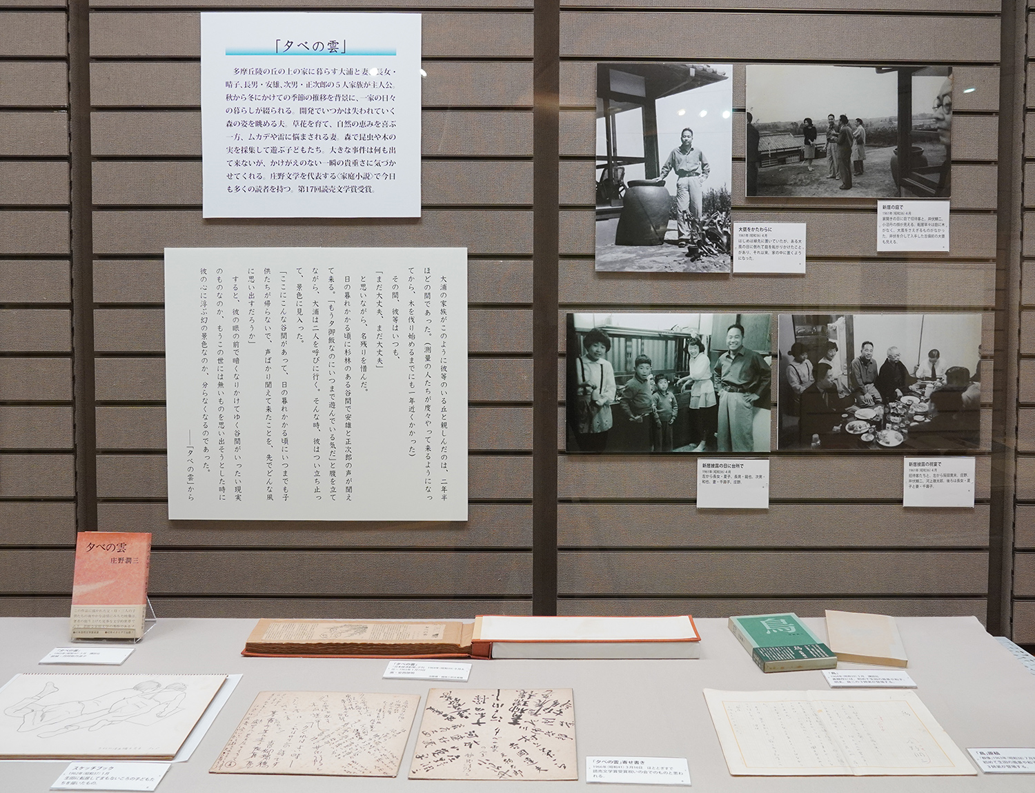 この展覧会は、庄野の88年の生涯の軌跡はもちろん、彼の家族との写真や直筆の原稿やスケッチ、アメリカ留学中のノートなど、数多くの貴重な品々が展示されています。