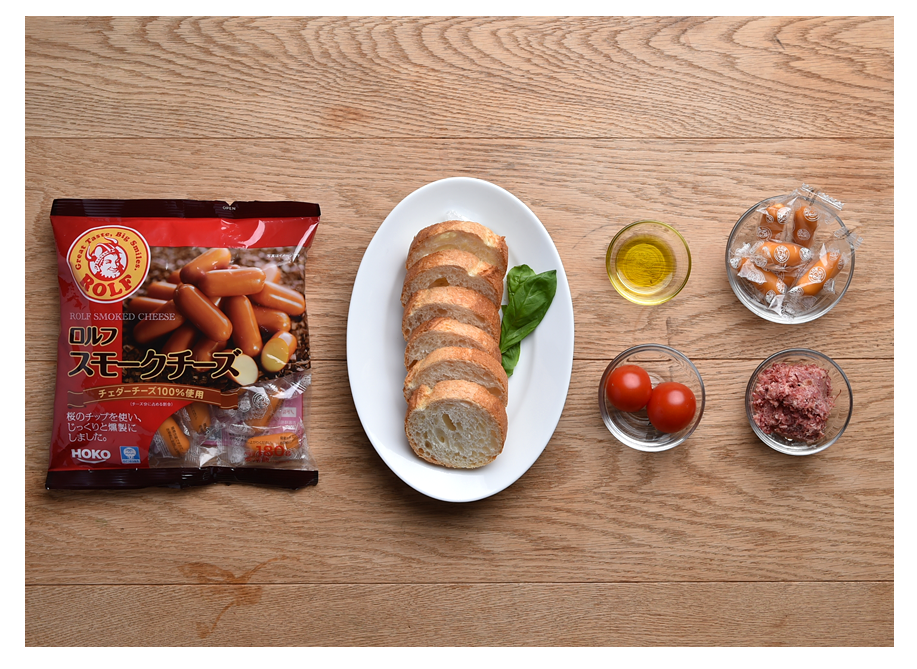 トマトとスモークチーズをのせ、トースター で5分ほど焼く。