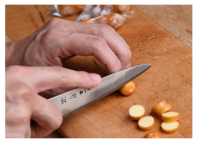 スモークチーズを7〜8等分の輪切りにする。スモークチーズをカットしてのせると焼いた時に綺麗に見えます。