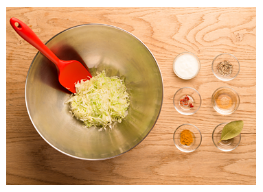 千切りにしたキャベツを皿に広げ、塩をまぶしラップなしで3分レンジで加熱する。その後、調味料を混ぜ合わせザワークラフトの完成。