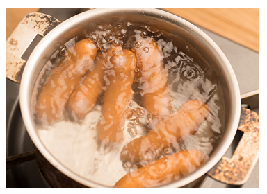 鍋にお湯を入れ沸騰させる。火を弱火にし、シャウエッセン®を3分加熱する。