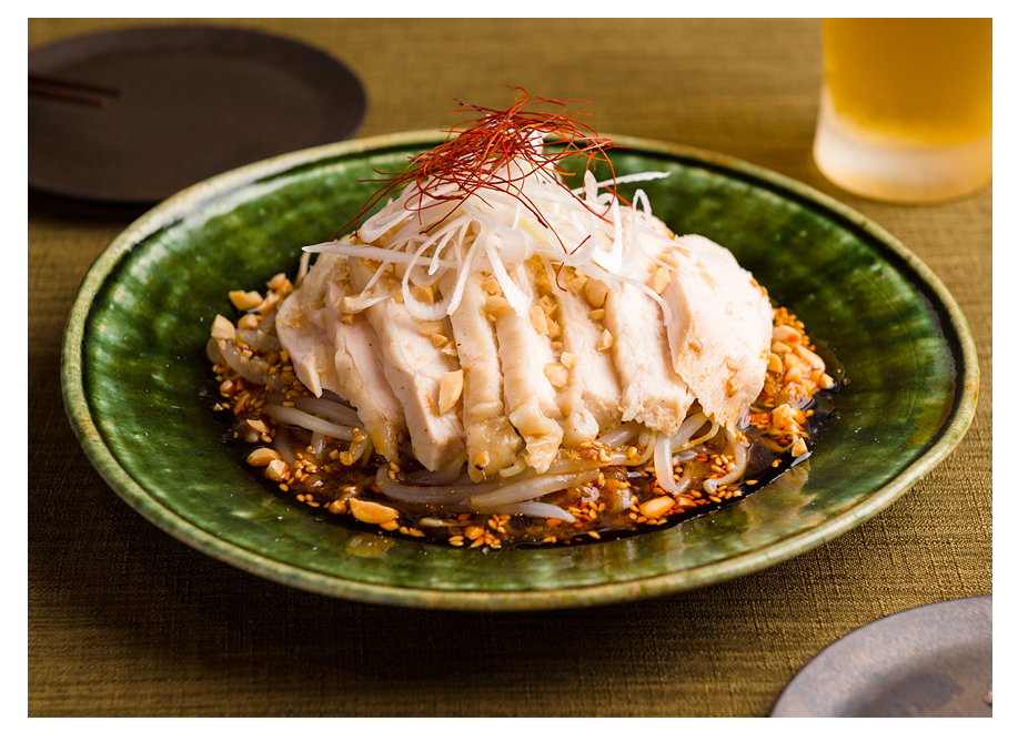 お好みで、茹でもやしや、きゅうりを添えてボリュームを出してもいいですね。ヘルシーなむね肉だから深夜のおつまみでも安心です。
