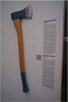 この斧を寄贈したドイツ人の女性には同棲していたガールフレンドがいたそうなんです。ある日この女性がしばらくアメリカに旅に出ることになって彼女とガールフレンドは空港で涙のお別れをしたそうなんです。自分のことを心待ちにしてくれていると思っていたのに、実際にドイツに帰ってみるとそのガールフレンドは新しいパートナーを見つけたそうで、会って4日間とか数日しか経っていないけれどその人はあなたじゃ私に与えられないものを持っているからと言ったそう。