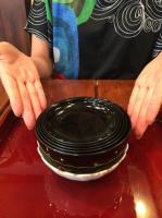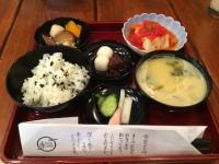 ▲寺カフェ安らぎ御前(精進料理だけど、豆腐はカポナータ。器は、応量器といって、すべて重ねて1つになるものを使用)