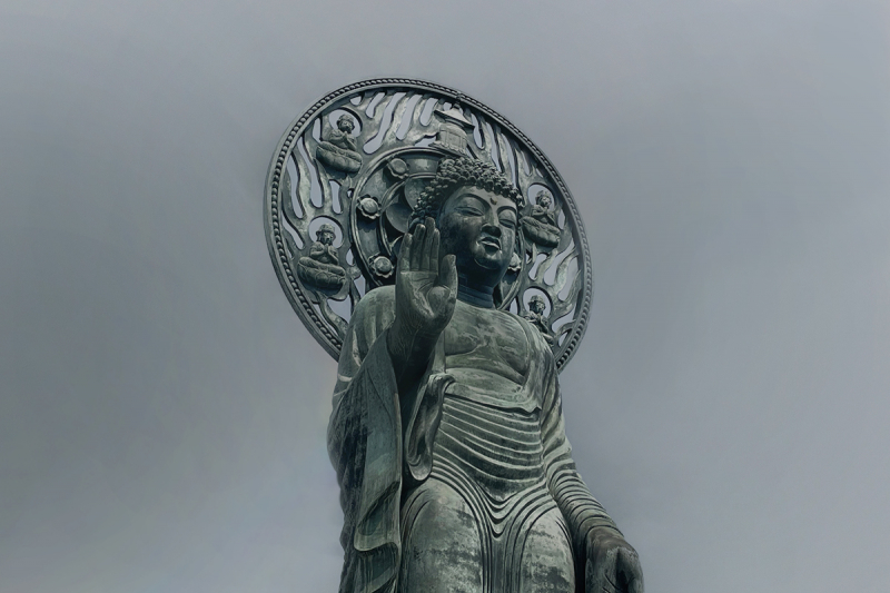 そして大佛さまの正面に行っていただきますと、大佛さまが本堂の方から参拝してくださっている方の正面を向いてくださいます。お参りをしていただくと、大佛さまも向いてくださるという仕掛けになっております。