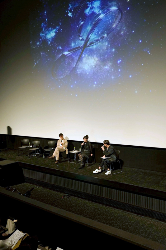 今回、この試聴会では、すでに公開されている4曲のミュージックビデオと、この日のために特別に制作したリリックビデオ8曲を、アルバムの曲順に繋げた映像にしたものを観ながら、アルバムを視聴していただきました。